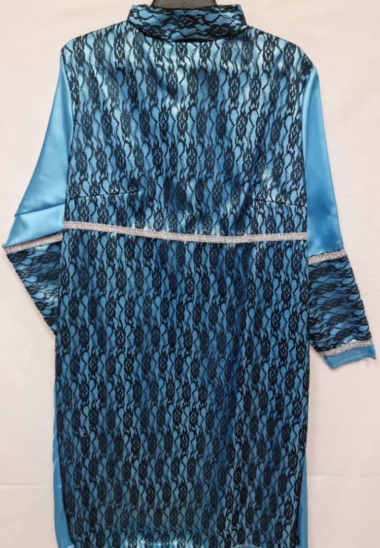 Платье для умершей из атласной ткани, с воротником. Отделка — гипюр по рукавам и по лицевой части платья, сзади разрез на липучке, кант и манжеты с тесьмой, приталено. Размерный ряд 46,48–50,52–54,56–58,60–62 Упаковка — вешалки и пакет. Арт:019
