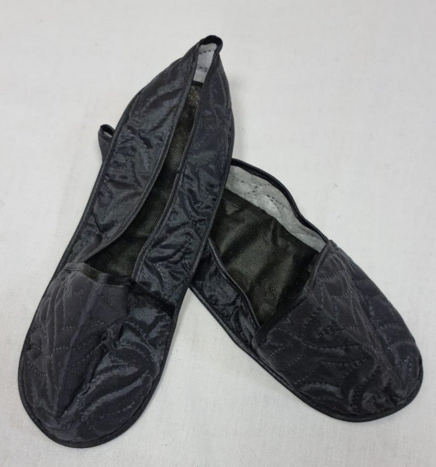Тапочки мужские черные с черной окантовкой, из стеганной ткани Состав: атлас или полиэфир Размер: 40–46 Арт:041