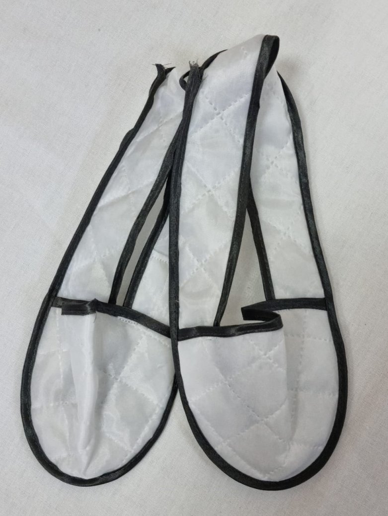 Тапочки женские белые с черной окантовкой, из стеганной ткани Состав: атлас или полиэфир Размер: 36–44 Арт:040