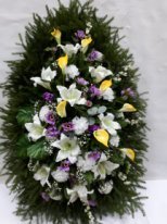 Ритуальный венок из искусственных цветов на живой хвое Высота 110см Арт:057