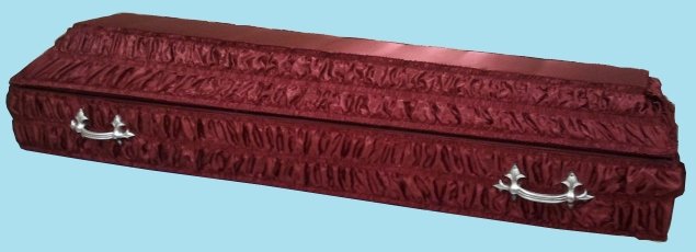 Выполнен из сосны, обитый атлас. В комплект входят: ручки, обивка. Цвет: синий, бордовый. Внутренние размеры: длина 2070мм, ширина в плечах 600мм Арт:033