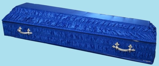 Выполнен из сосны, обитый атлас. В комплект входят: ручки, обивка. Цвет: синий, бордовый. Внутренние размеры: длина 1970мм, ширина в плечах 550мм Арт:032